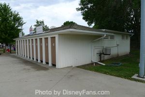 The nearest restrooms are located inside the front gate to the right side near the train tunnel.