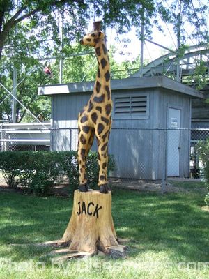 {{PAGENAME}} was a sculpture of a giraffe carved out of a tree near the [[River Rapids]] log ride. It appeared in [[2006]], and was painted with spots the following season. | {{PAGENAME}} was a sculpture of a giraffe carved out of a tree near the [[River Rapids]] log ride. It appeared in [[2006]], and was painted with spots the following season. Posters in our Facebook group that worked in the park say Jack was there through the 2015 season, but was damaged during the removal of the log ride. | ||